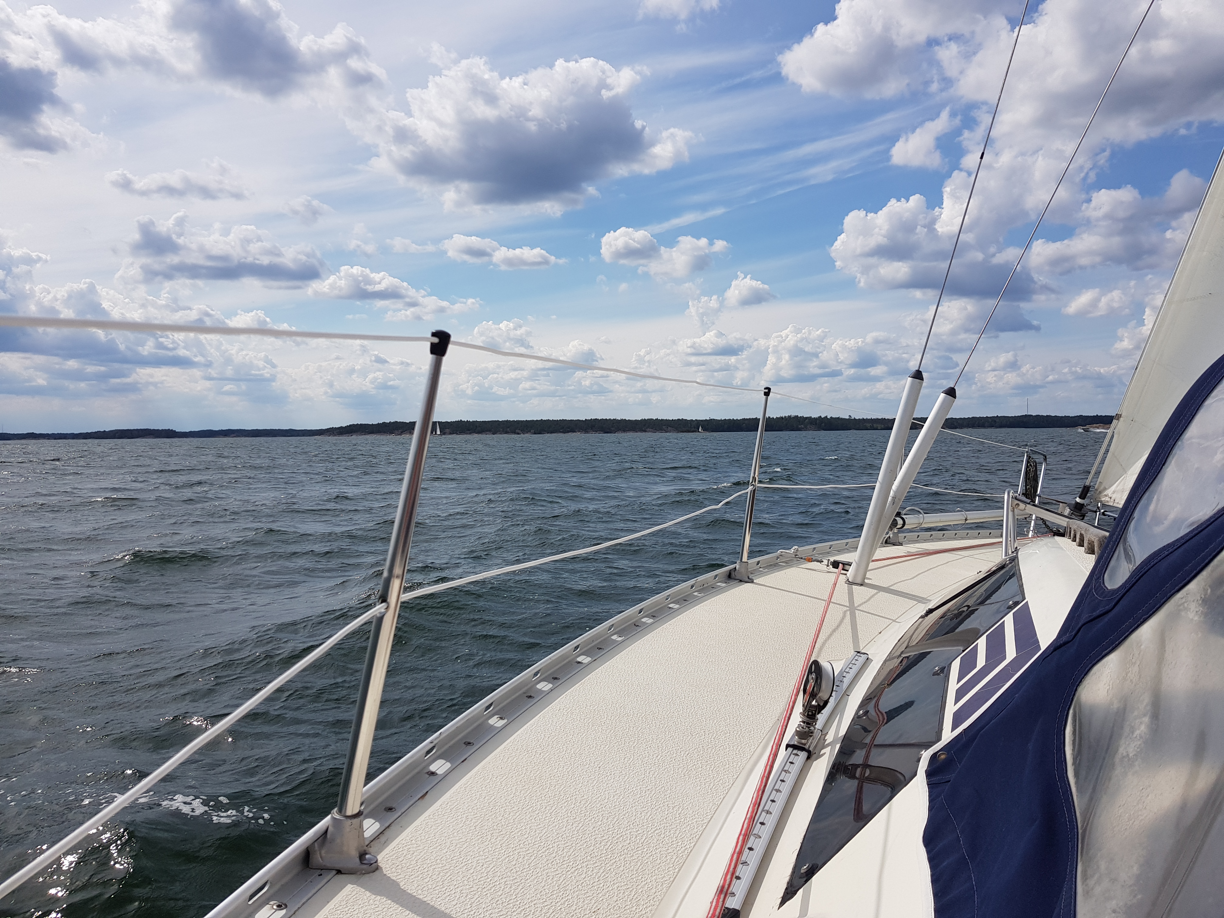 Avslutade med semesterns kanske tuffaste segling. Tog ett rev men i en by gick vattnet upp på skarndäcket. Efter några slag var det slut på kryssandet och vi åkte halvvind in till bryggan. 5 veckors segling är till ända. Vädret har varit fantastiskt skönt (det har ställt till det för många..). Idag tyckte vi det var lite svalt i vattnet när det kröp ner under 22. När får vi uppleva det nästa gång? Motorn har jobbat mer i år. Typ halv tank nu och vi fyllde några liter innan Gotlandsöverfarten, gissar på kanske 50 distans motor. 100 med spinnaker eller gennaker. Totalt troligen över 400. Får räkna ihop. Nu några helger sen väntar vi på nästa sommar.