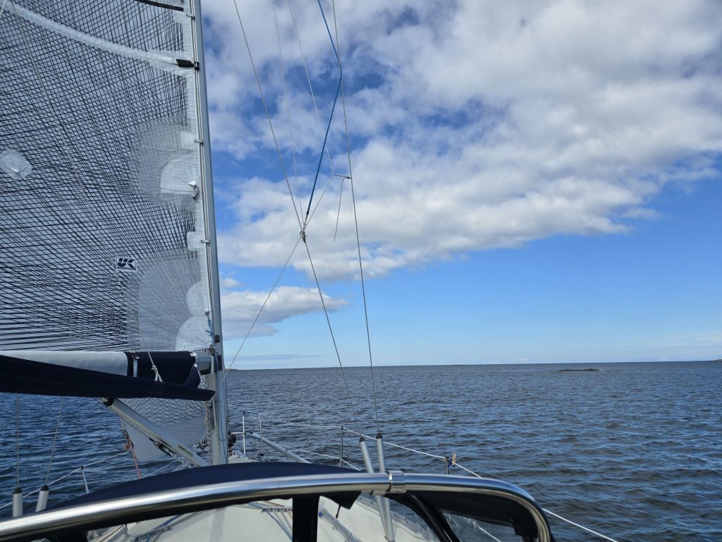 Svajande prognoser.. Sista veckan närmar sig… blåst och regnprocent huller om buller. Västervik kanske kan vara trevligt. Sydliga vindar så långt prognoserna sträcker sig. Vaknar till en svag sydan.. kör rakt ut i havet och sätter kursen söderut. Vinden ökar och vågorna ökar… lusten att kryssa infinner sig inte. Öland lockar. Äsch. In med autopiloten och fram med en god bok.