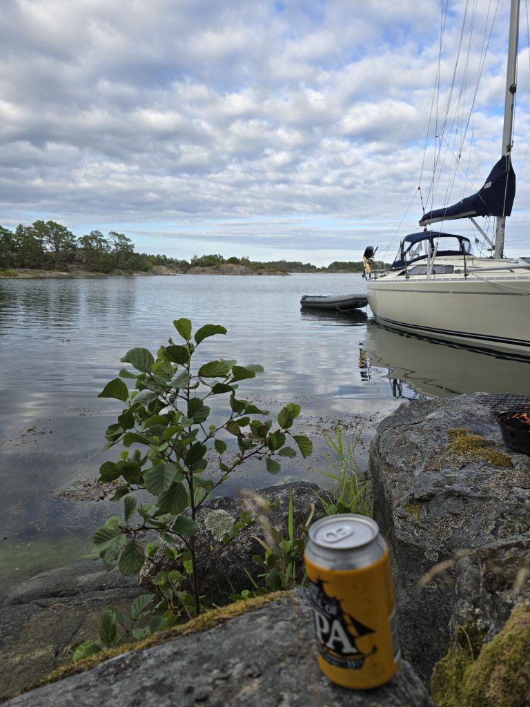 Landade först vid Kryssarklubbens brygga i Stugvik och grillade magiska burgare. Väldigt lite båtar med tanke på vädret.. Vi gick till en boj för att slippa kulingen i sidan. Nån timme senare var alla bojar tagna, ett par båtar på svaj och tre vid bryggorna.