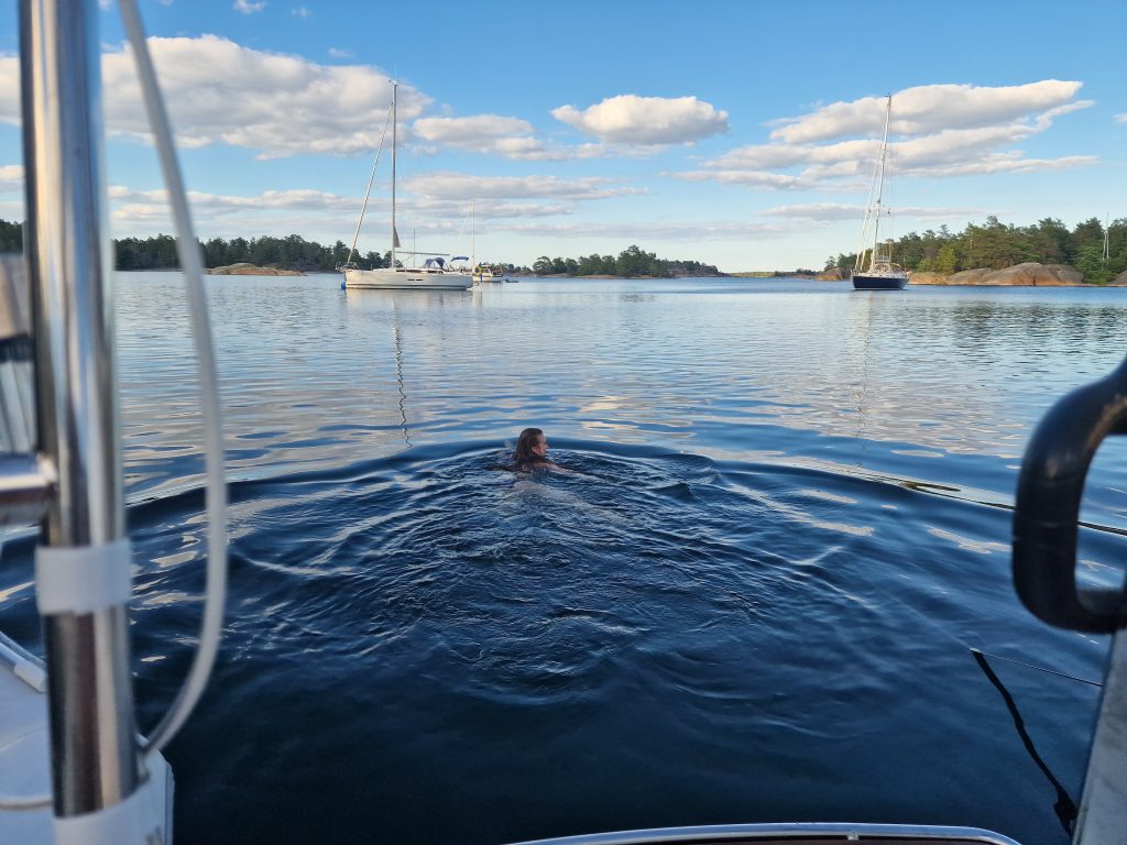 Ursprungsplanen var att stanna någonstans på vägen men fortsatt god västlig vind gjorde att vi ångade på. Diket in mot Karlskrona bjöd dock inte på mycket till segling. Väldigt smalt och mörkblått i sjökortet. Överaskande låg temperatur i vattnet. Kul att angöra Karlskrona med militär närvaro, färjor, marinmuseum osv. Centrum en kort promenad bort, mkt fint servicehus, billigt att tvätta, bastu..