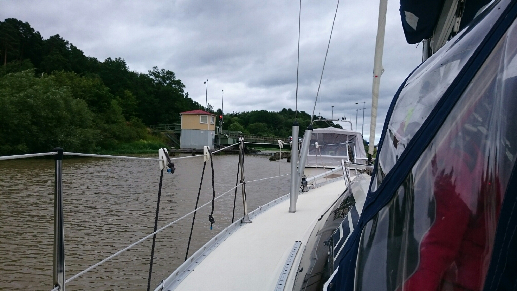 Hade verkligen hoppats på gennakerpremiär men icke.. Vaknade till en svag västan som hade varit perfekt att glida på men alla 2 sekundmetrarna vände ner mot syd. Blev några krysslag innan pentan drogs igång.
